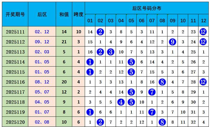 一区(01-12):上期开出1个号码,最近10期该区开出21个号码,出号较热,本期瞻望会开出3个奖号,保举奖号05、09、10。