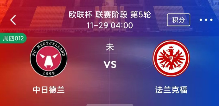 周四 012 欧联杯:中日德兰VS法兰克福