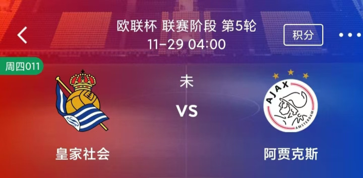 周四 011 欧联杯:皇家社会VS阿贾克斯