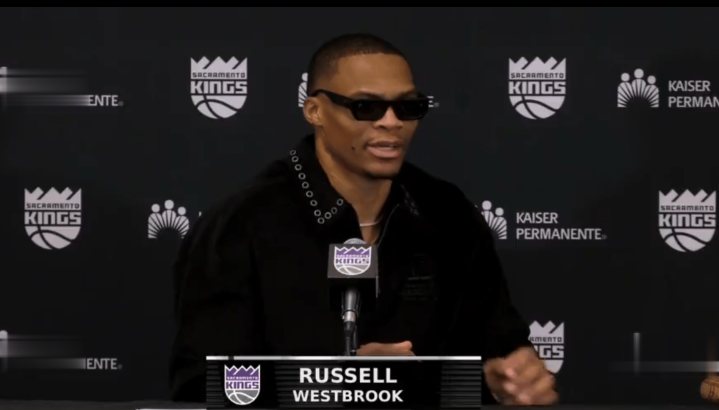 赛后,威斯布鲁克收受了记者的采访。